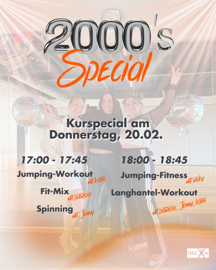 Am 20.02. nehmen wir euch mit zurück in die 2000er – mit starken Beats & richtig guter Stimmung 17:00–17:45 Uhr Jumping-Workout mit Kathi (KR1) Fit Mix mit Patricia (SKR) Spinning mit Jenny (KR2) 18:00–18:45 Uhr Jumping-Fitness mit Vicky (KR1) Langhantel-Workout mit Jenny, Kathi & Patricia (SKR) Anmeldung ab dem 13.02. über die Technogym App möglich […]