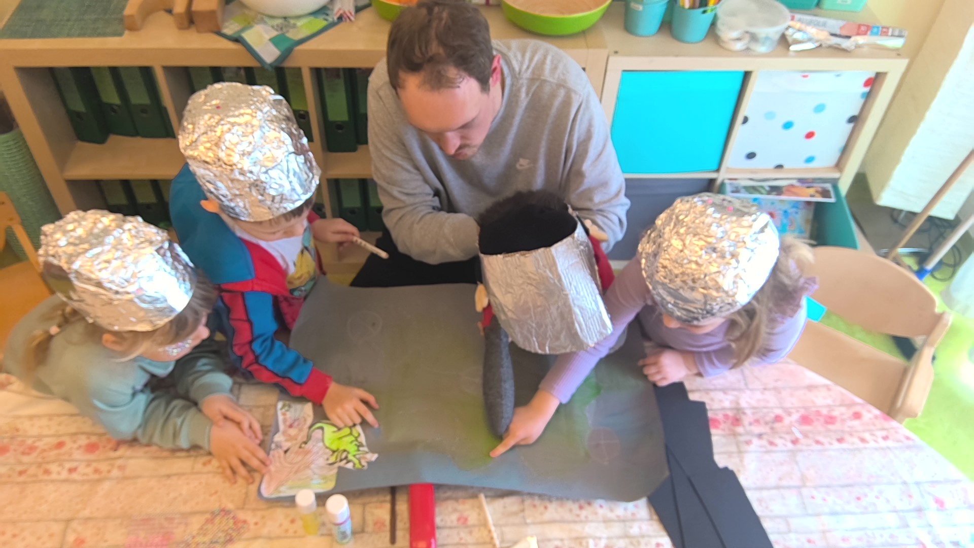 Die Ameisen sind im Mittelalter bei den Rittern angekommen und basteln fleißig ihre Rüstungen, Helme aber auch Musikinstrumente. Dazu wurde aus Tontöpfen mit Butterbrotpapier Trommeln