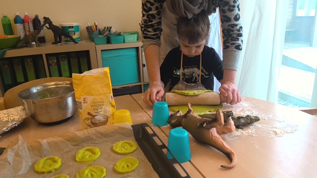 Mmmmmmh, was duftet denn so gut in der ganzen Kita? Die Ameisen sind fleißig am Teig ausrollen und Plätzchen ausstechen! Aber ganz normale Kekse werden es nicht, denn die Plätzchen sehen so aus, als wären da Dinosaurier drüber gelaufen. Die Kinder drücken in jedes ausgestochene Plätzchen die Dinosaurierfüße, so das klare Spuren auf den Teig […]