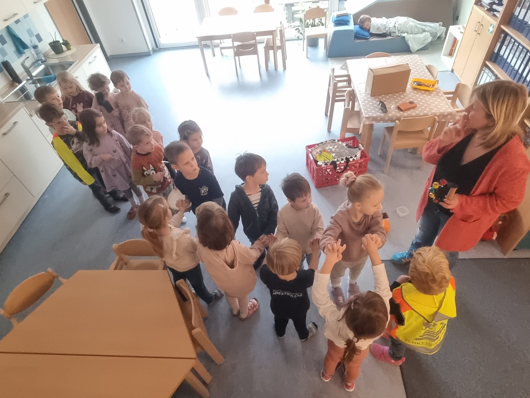 Zudem hat Nadine den Kindern im Anschluss noch die Gebärden „Guten Morgen“ und „Ich liebe Dich“ beigebracht. Dieser besondere Wortschatz wird jetzt nach und nach ergänzt.