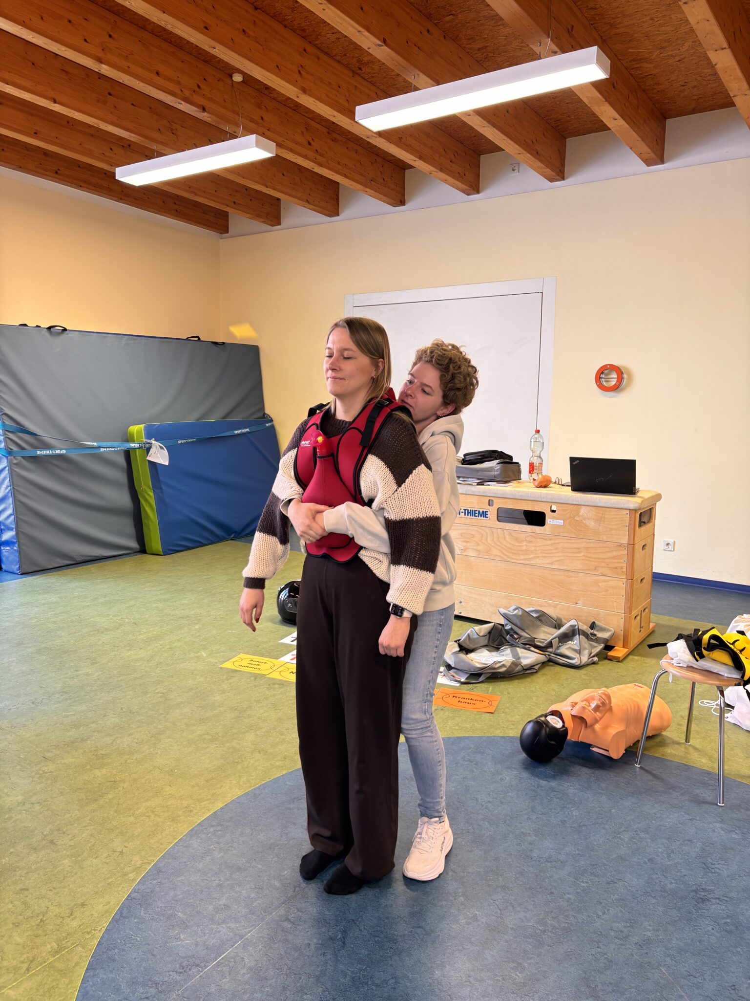 Wir haben gelernt, wie man bei Erstickungsgefahr richtig handelt, was bei verschiedenen Verletzungen zu tun ist und wie ein Defibrillator angewendet wird. Außerdem haben wir die Wiederbelebung bei Kleinkindern geübt und besprochen, wie man sich in akuten Notlagen ruhig und sicher verhält.