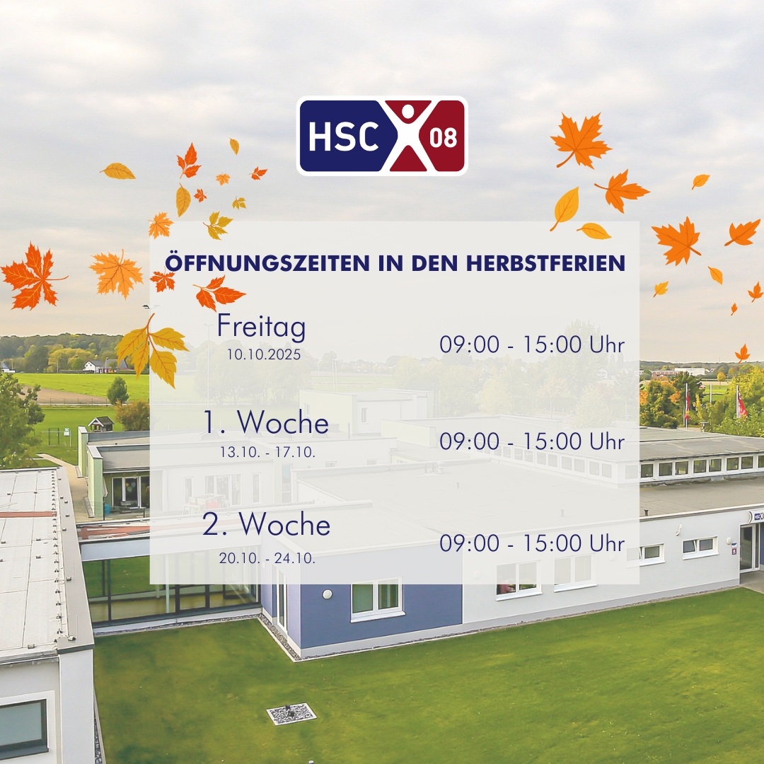 Während der Herbstferien ist die HSC-Geschäftsstelle zu folgenden Zeiten geöffnet: