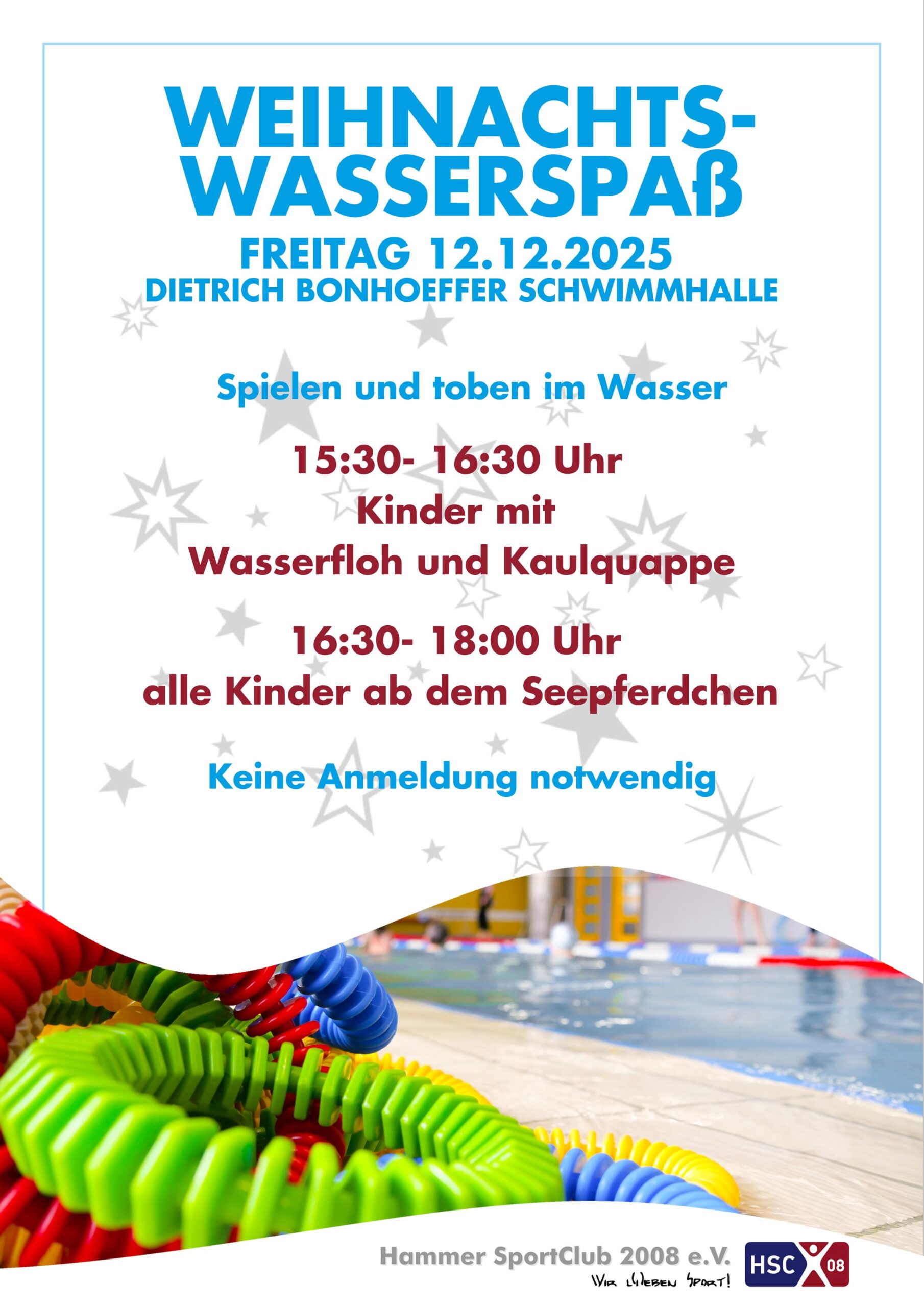 Am Freitag, den 12.12.2025, wird es festlich im Wasser: Wir laden alle Kinder zu einem fröhlichen, bewegungsreichen Adventsnachmittag ein!